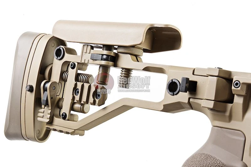 ARES M40A6 dirancang dengan bodi ringan namun tetap kokoh, dilengkapi dengan stock lipat yang memberikan kemudahan dalam mobilitas. Ergonomi yang optimal serta grip berbahan karet yang lembut meningkatkan kenyamanan saat penggunaan dalam waktu lama.