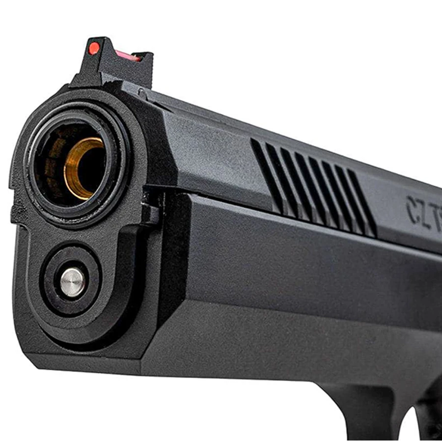 Dari sisi ergonomi, CZ TS2 tampil unggul dengan grip anti-slip menyeluruh, grip duralumin, front sight fiber optic merah yang cepat terbaca, serta rear sight adjustable blacked-out untuk bidikan tajam ala red dot. Ditambah trigger single-action adjustable, extended safety, dan extended mag release—semuanya dirancang untuk kecepatan dan kenyamanan kompetisi.