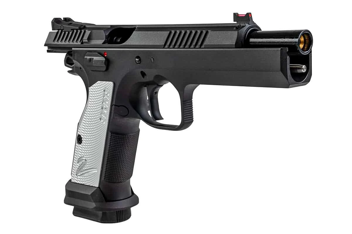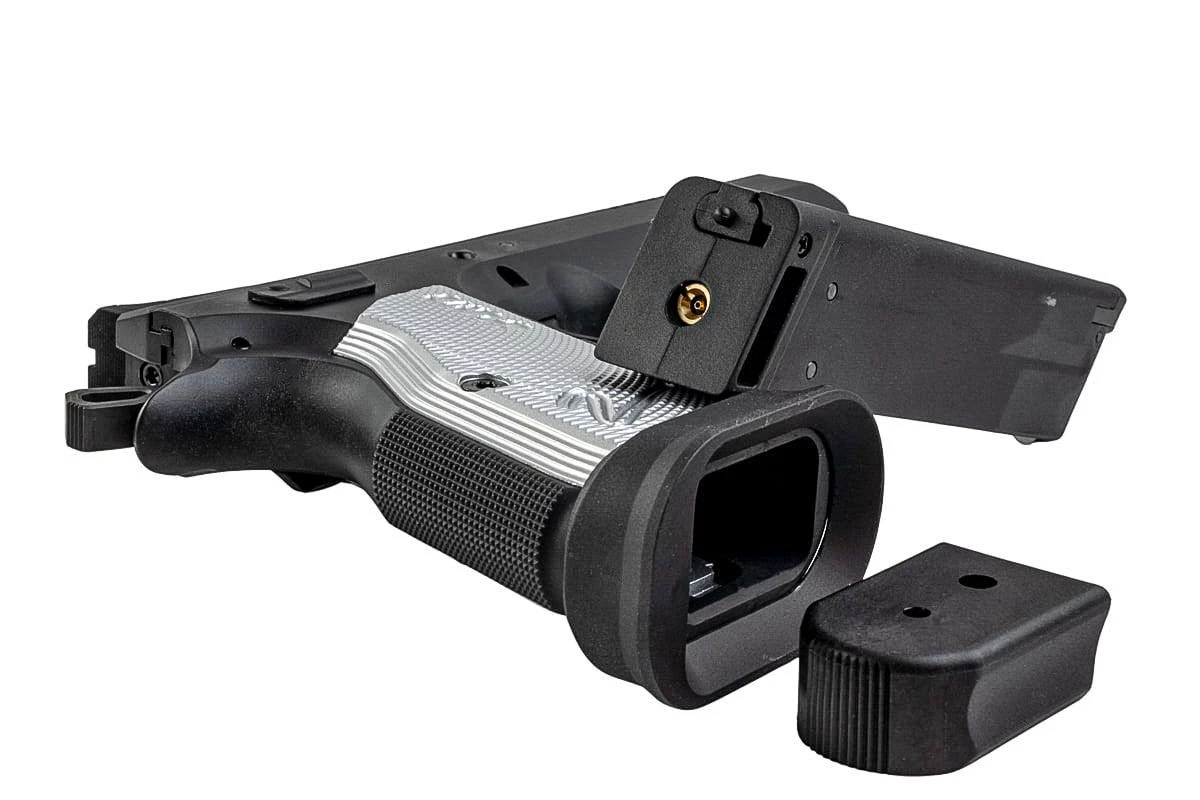 Pistol Airsoft KJ Works CZ TS2 GBB adalah pistol blowback gas premium yang dirancang khusus untuk pemain dan penggemar airsoft kompetitif. Berlisensi resmi ASG, pistol ini meniru pistol CZ TS2 Tactical Sport yang ternama dengan realisme dan performa yang luar biasa. Pistol ini dilengkapi rangka dan slide logam penuh untuk daya tahan dan bobot yang realistis. Dengan panjang keseluruhan 230 mm dan bobot 1,4 kg, pistol ini menawarkan rasa seimbang dan kokoh. Desain profil slide yang lebih rendah memberikan estetika sumbu laras rendah khas CZ, yang bertujuan untuk mengurangi rekoil vertikal. Laras dalam 120 mm memastikan presisi, sementara sistem hop-up yang dapat disesuaikan meningkatkan akurasi. Dilengkapi dengan magasin gas hijau berkapasitas 26 butir peluru, pistol ini memberikan performa menembak yang konsisten pada kecepatan sekitar 328 fps dengan BB 0,20 g.