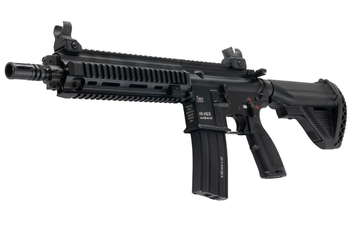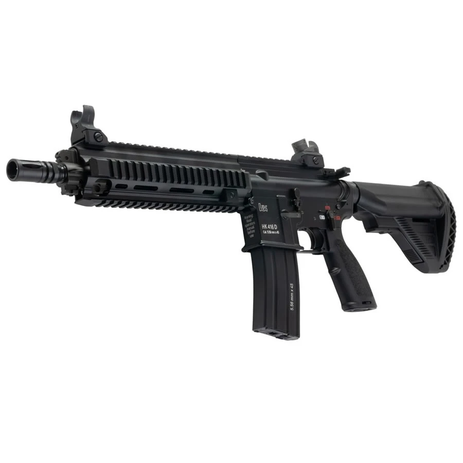 Versi airsoft HK416D GBBR ini merupakan hasil kolaborasi Heckler & Koch dan CYMA CGS, dengan lisensi resmi dari Umarex (Elite Force). Replika ini menghadirkan detail autentik dengan trademark dan rollmark H&K asli, serta dimensi yang setara dengan versi senjata asli (real steel).